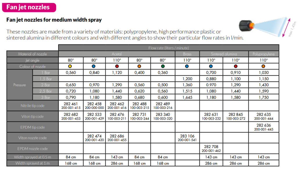 Nozzles suitable for medium widths